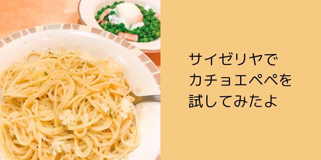 サイゼリヤのメニューブックで、スパゲッティ「アーリオ・オーリオ」のところでアレンジメニューの一つとして紹介されている「カチョエペペ」。こないだ初めてサイゼリヤで試してみた。