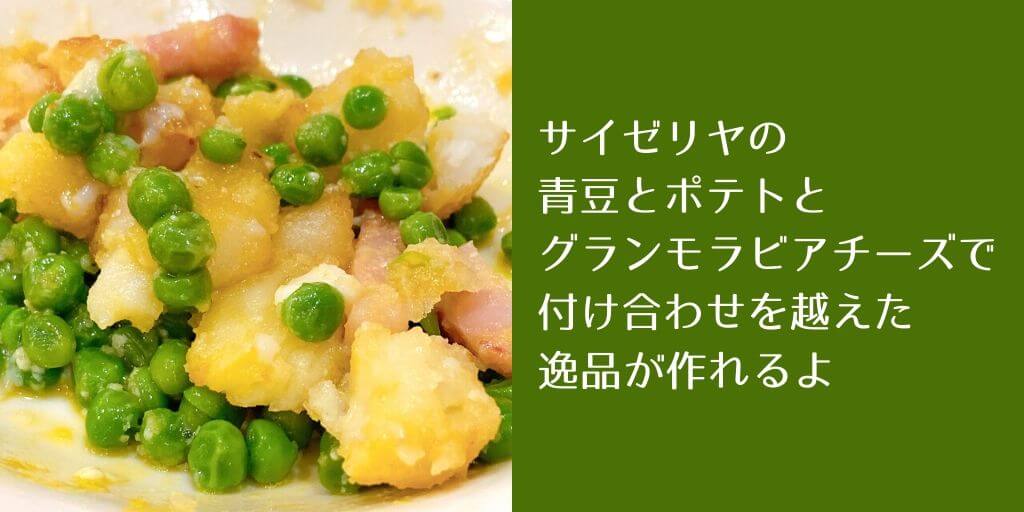 ポテトを青豆に入れてグランモラビアのチーズをかけるじゃろ